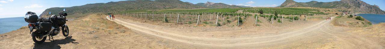 Jūras - krasta panorāmskats uz vīnogulājiem.